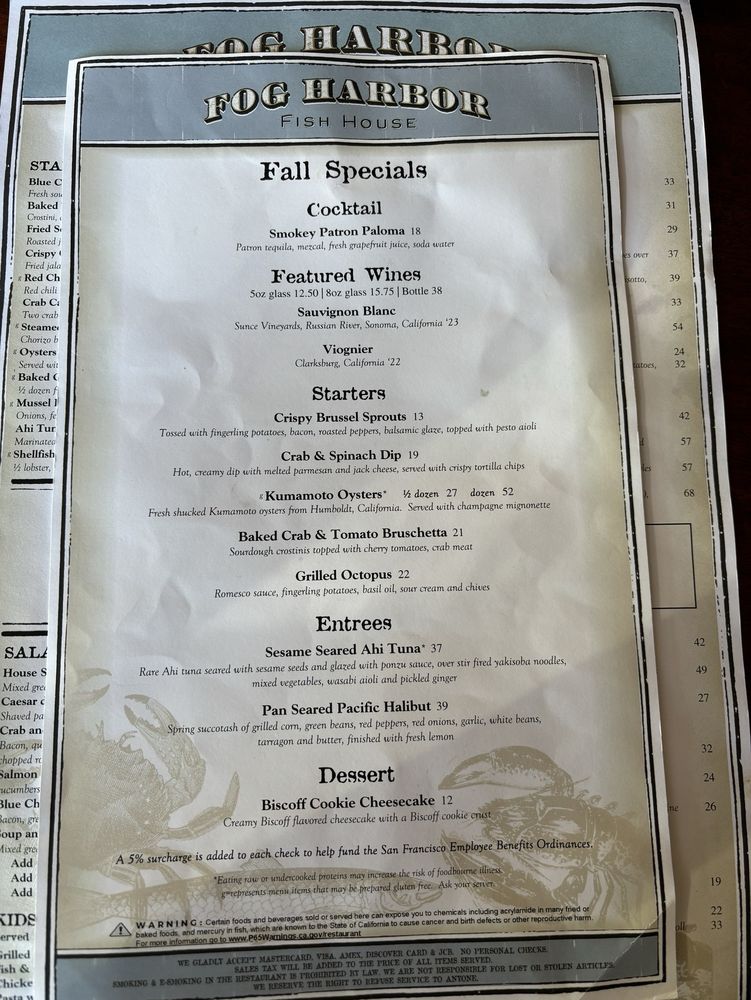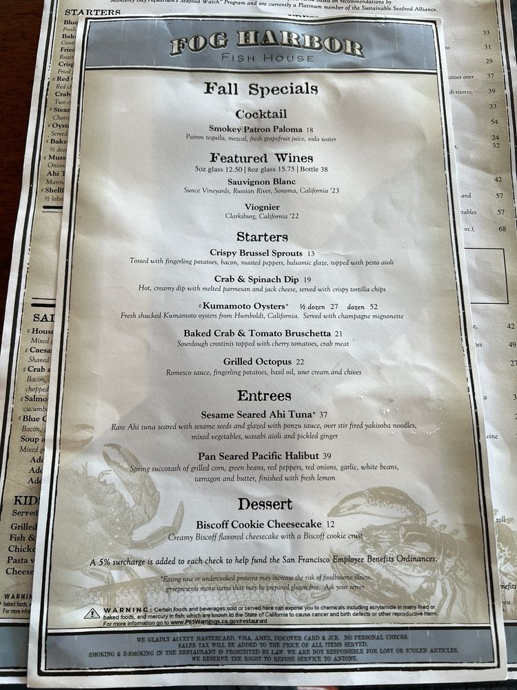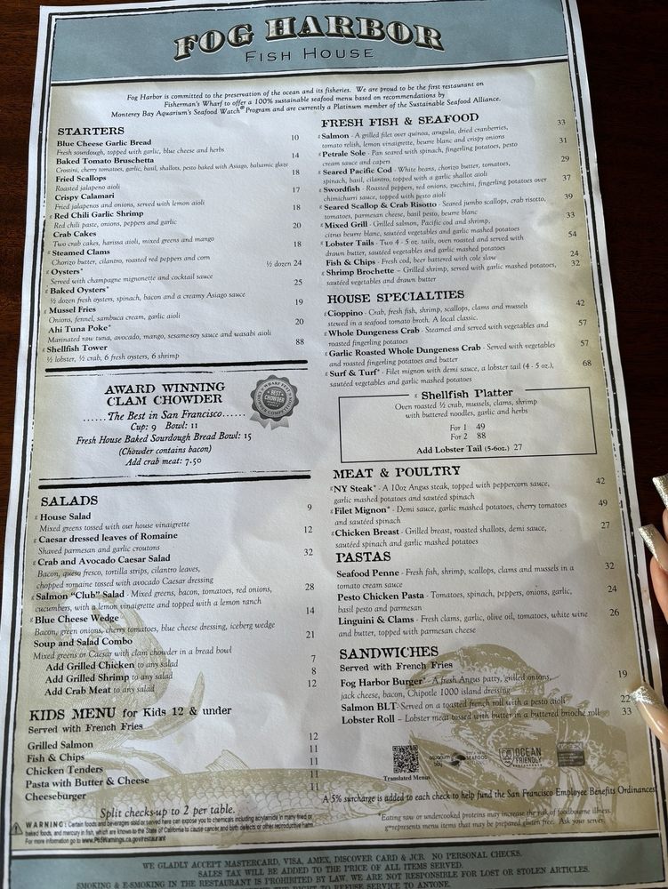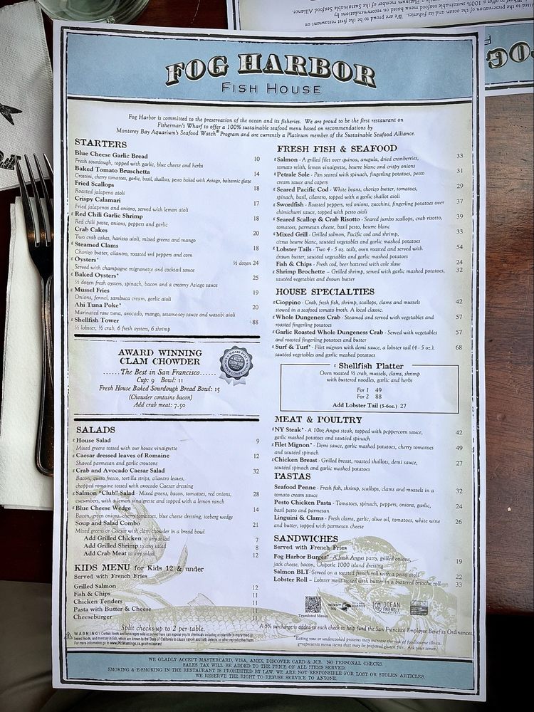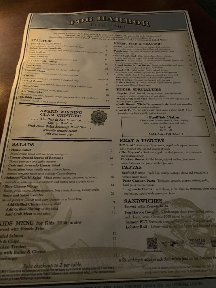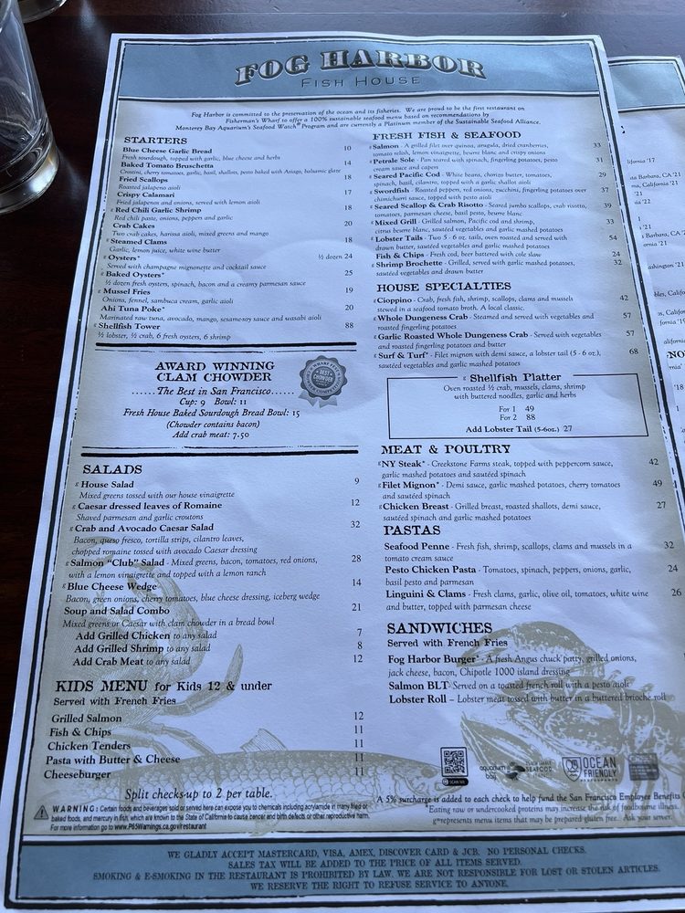 Introducing the menu at Fog Harbor Fish House brings a taste of the sea to San Francisco Pier 39. With a focus on fresh seafood, this restaurant offers vegan and vegetarian options alongside classic fish dishes. The extensive menu includes favorites like clam chowder, calamari, and lobster rolls. Customers praise the attentive service and the inviting ambiance, making it a must-visit spot for locals and tourists alike. The restaurant provides a range of amenities such as outdoor seating, full bar, and private dining options, ensuring a memorable dining experience. Don't miss out on the opportunity to savor delicious seafood while enjoying picturesque views of the bay at Fog Harbor Fish House.